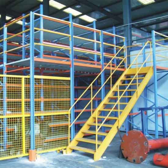 The system installs over existing workspace or shelving. It creates two or three additional storage levels. Workers access these levels via stairs, lifts, or forklifts. Goods move to upper levels using hydraulic lifts or freight elevators. Once upstairs, manual carts or pallet trucks position items. This design optimizes workflow. It separates storage from operational areas.